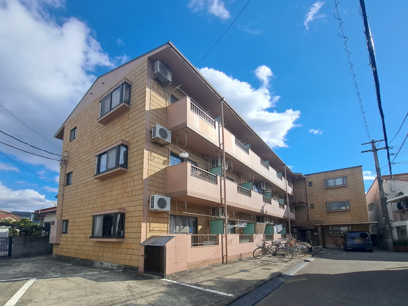 淡い色の外観でとても周辺環境が便利な住みやすい物件です。