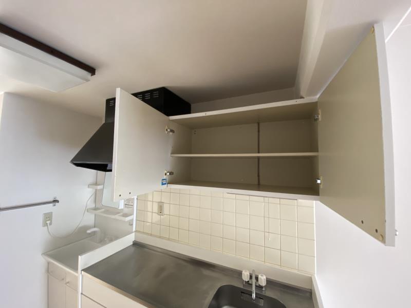 収納スペースは下の棚だけでなく、上にもついており食器類や調味料もたくさん置くことができます!